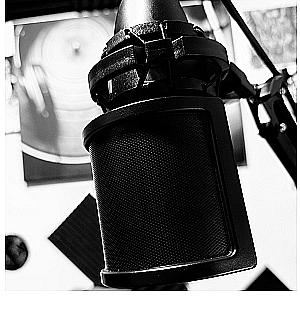 Volt 2 preamp interface in a sound proofing recording room